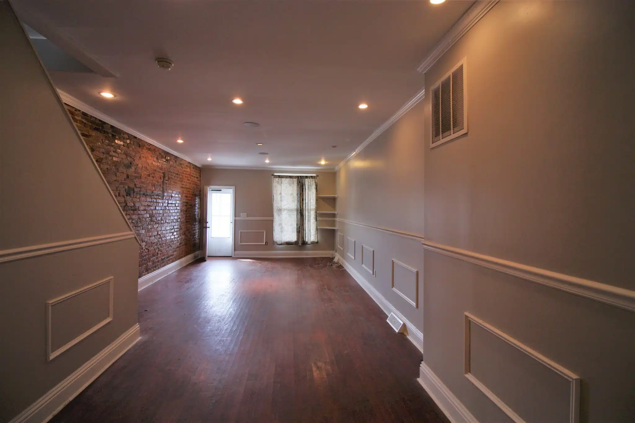 Check out this stunning 3-bedroom, 1.5-bathroom home at 1602 East 29th Street, featuring a spacious granite countertop kitchen with ample wood cabinets for all your kitchen gear. Entertain with ease in the spacious living room. Be wowed by its stylish exposed brick interior and the warm glow of real hardwood floors. Strategically placed spotlights illuminate every corner of the living room, highlighting the unique charm of this remarkable home.